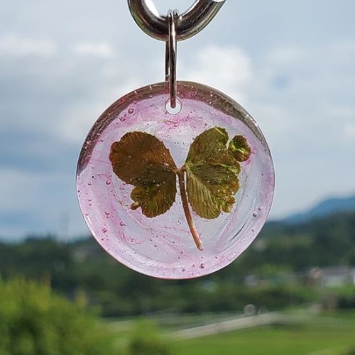 日本一の星の村、スタービレッジ長野県阿智村で摘み取った四葉のクローバーをレジンに封じ込め、