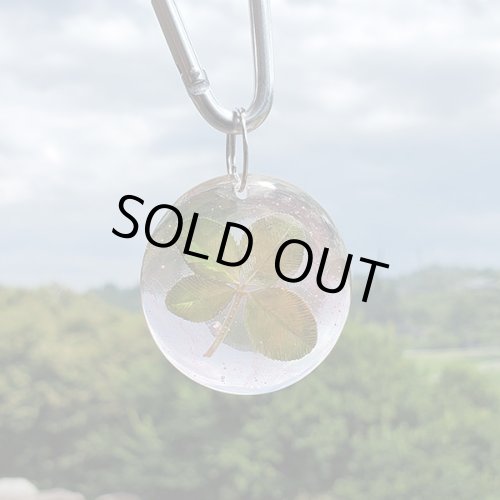 日本一美しく星が見える村、スタービレッジ長野県阿智村で摘み取った四葉のクローバーをレジンに封じ込め、同じく阿智村にある長岳寺にて、2020年6月18日にご祈祷をしてもらったキーホルダーです。