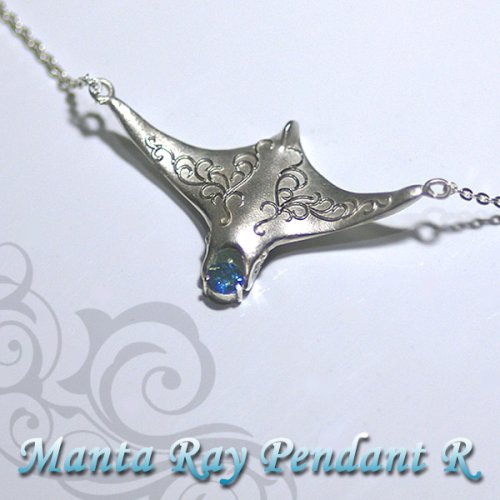 - > 小さなマンタ×唐草×天然宝石のペンダントS【送料無料】水の流れのような唐草模様を背負った小さなマンタの首飾り